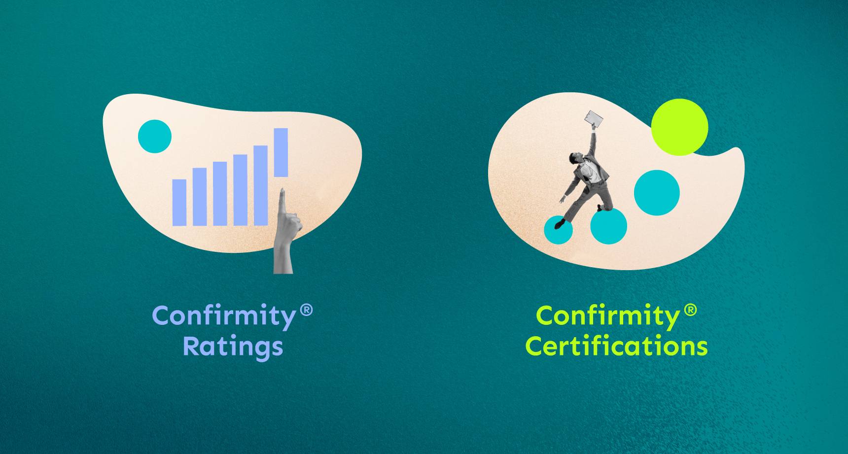 The brand colours represent the story of Confirmity's products, services, and purpose while embodying the excitement of positive business transformation.