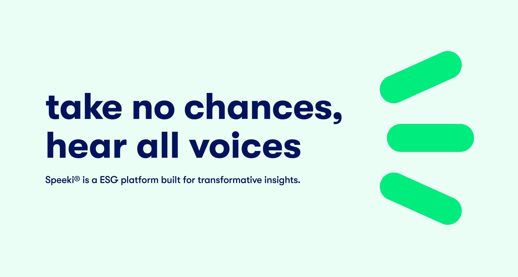 'Take no chances. Hear all voices' emphasises preemptively addressing potential ESG issues with sophisticated AI algorithms that detect early signs of risks like fraud or discrimination.