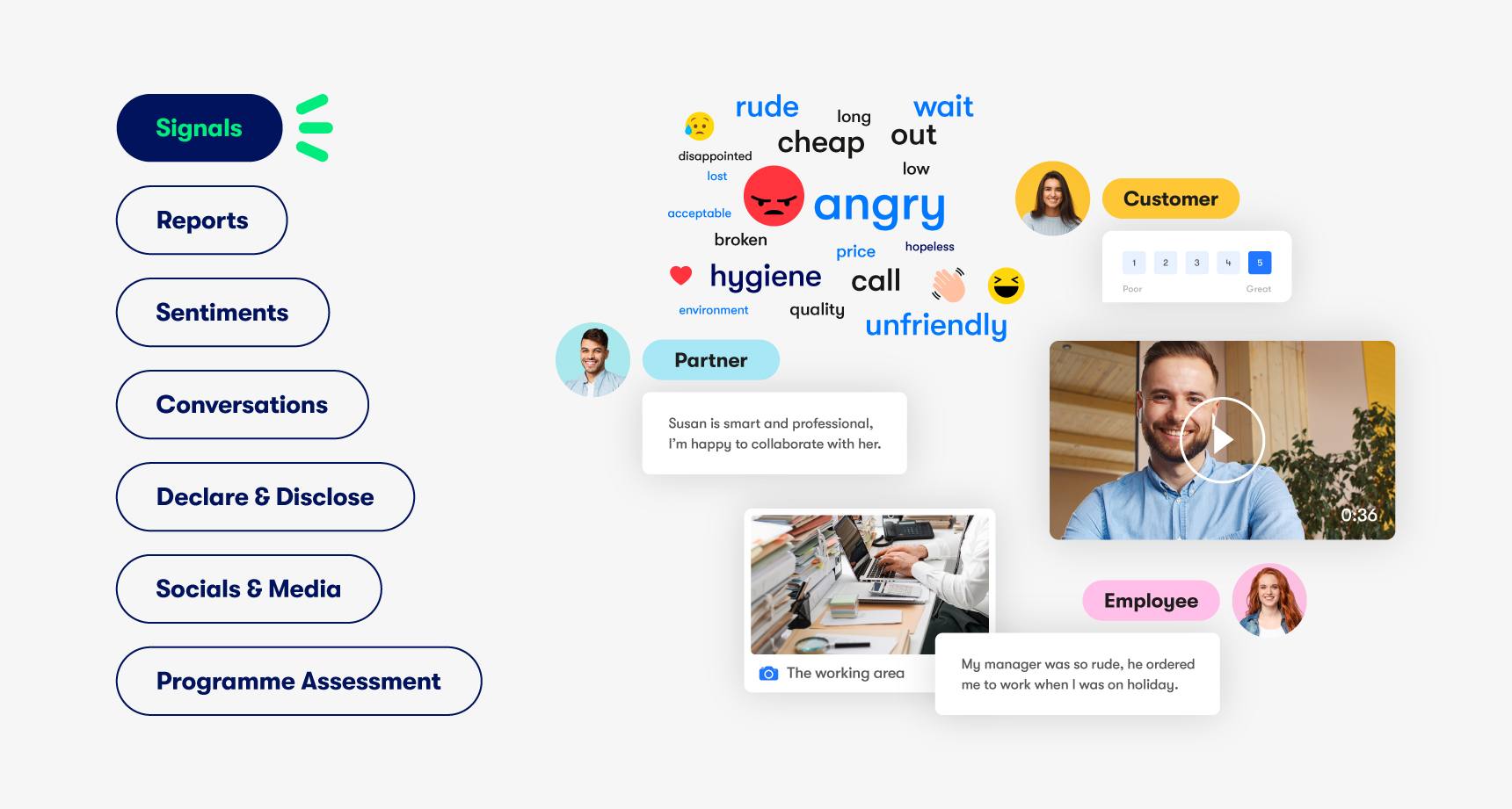 'Take no chances. Hear all voices' emphasises preemptively addressing potential ESG issues with sophisticated AI algorithms that detect early signs of risks like fraud or discrimination.