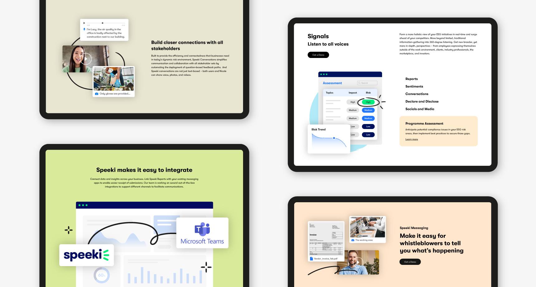 Kinsman Design was charged with a full rebrand for Speeki, aiming to establish it as a leader in the ESG sector.